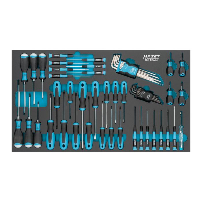 For tool trolleys Assistent 173, 179 (XL-XXL) and 180, we recommend usage of the soft foam inserts 163-522x40 or 163-522x50 - Number of tools: 56