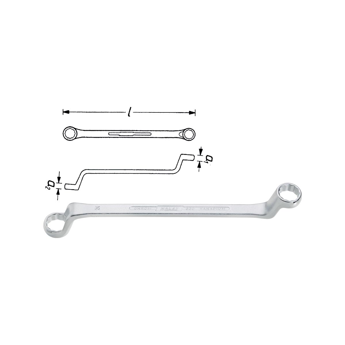HAZET 630A-1/2x9/16 Double box-end wrench offset, size 1/2 x 9/16