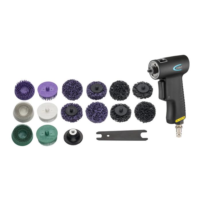 For using with various grinding media to remove rust, paint, adhesive and sealing residues or to clean metal surfaces and weld seams when using various abrasive media