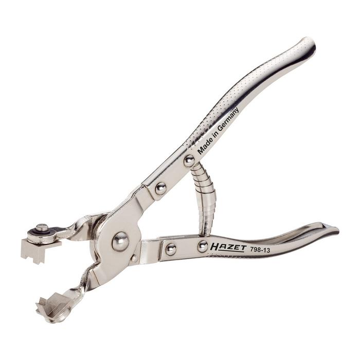 Operating spring band hose clamps whose three ends fit tightly on the hose, e.g. on tank ventilation lines and fuel lines on VW, AUDI, SEAT and Å KODA