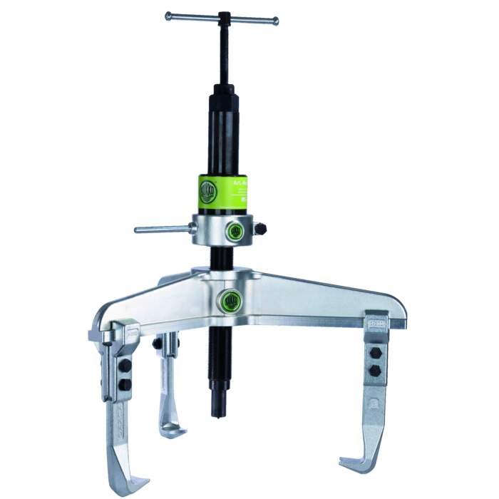 The extra-strong, 3-arm universal puller with grease-hydraulic spindle is used to pull off heavy, particularly tight-fitting bearings, gear wheels and washers in all common sizes. It can be used to loosen components that are seated on shafts and are freely accessible from the outside.