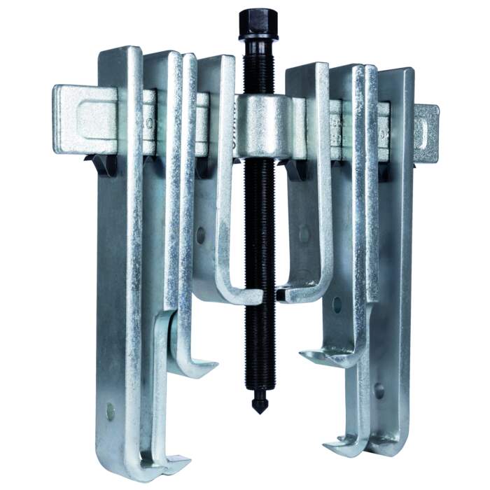 The 2-arm universal puller "Economy" with a versatile combinable puller leg set is used to pull off bearings, gear wheels and washers in all common sizes. It can be used to loosen any component that sits on a shaft and is freely accessible from the outside.