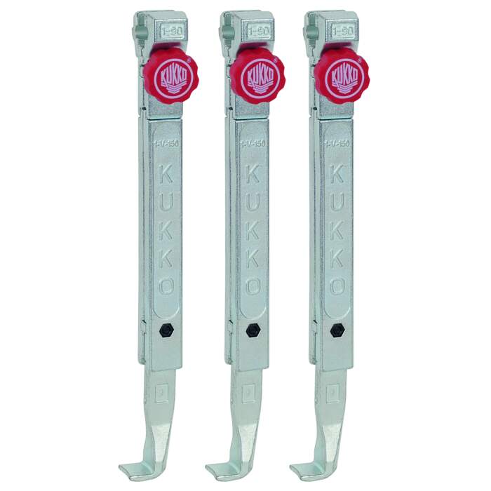 The set of three quick-adjustable standard pullers is suitable for 3-arm universal pullers. The robust pullers guarantee particularly safe and user-friendly extraction of bearings, gears and pulleys.