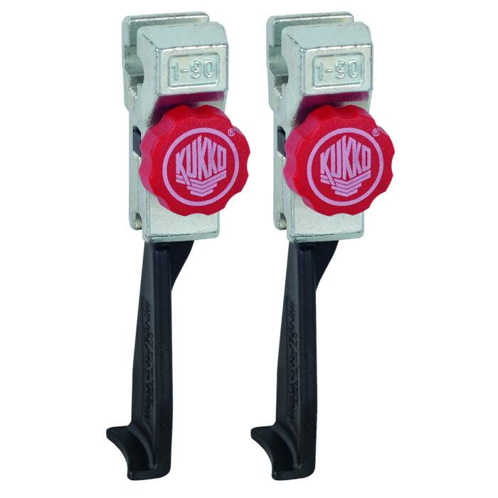 The pair of two narrow, quickly adjustable trigger hooks is suitable for 2-arm universal pullers. The narrow trigger hooks ensure that even narrow and poorly accessible gaps can be reached.