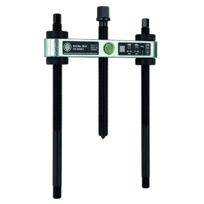 The pullers of series 18 are used together with the separators of series 15 and 17 for pulling off flat or thin-walled parts when there is not enough space for pullers and they have to be separated first.