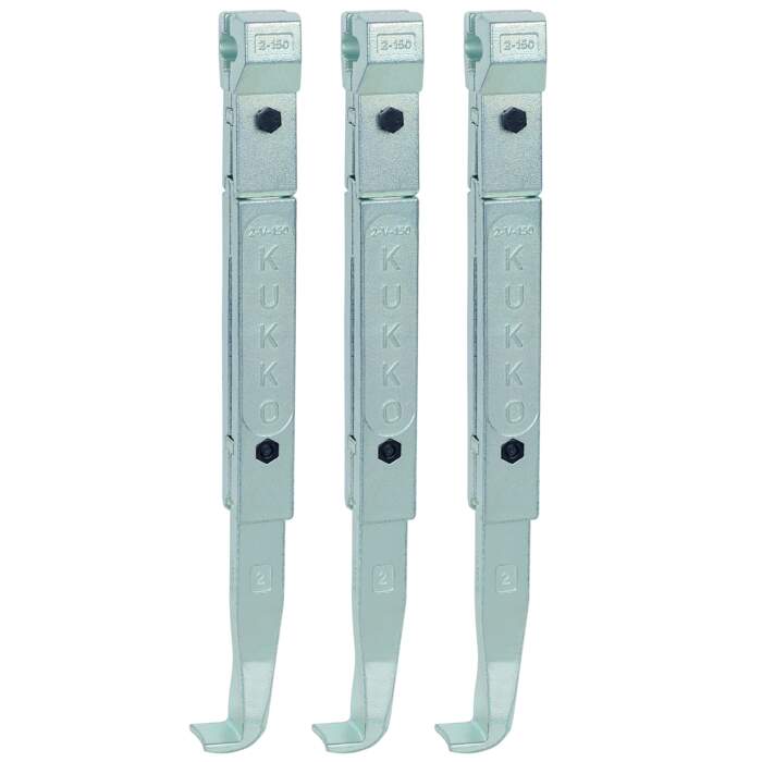 The set of three standard pullers is suitable for 3-arm universal pullers. The robust pullers guarantee particularly safe pulling of bearings, gears and discs.