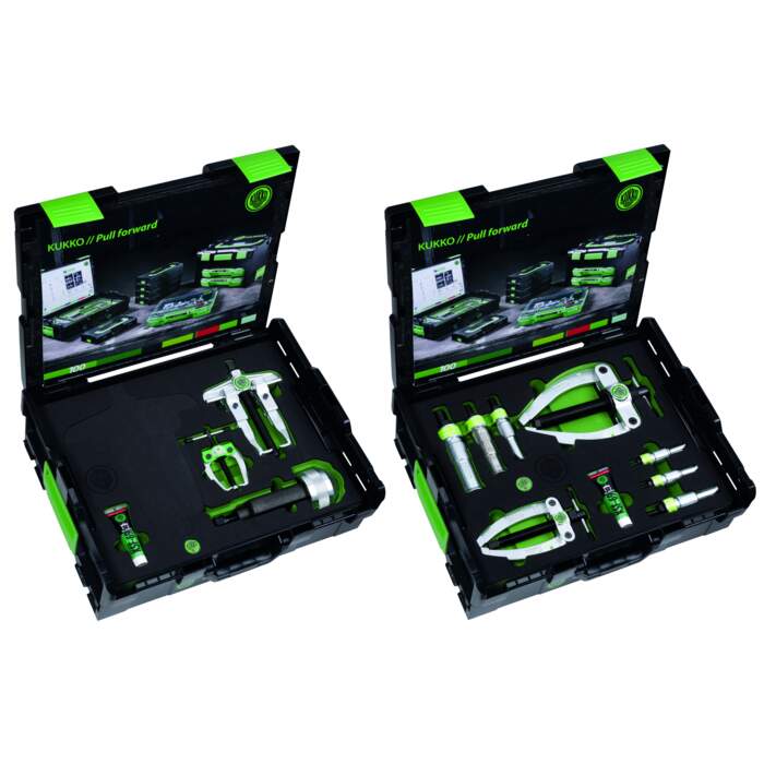 The ball bearing extractor and puller sets of series 24 are used for extracting bearings, gears, washers and for extracting internal bearings, bearing outer rings and bushes during repairs and maintenance. The set includes internal extractors, counter supports, extractor chucks and external extractors.