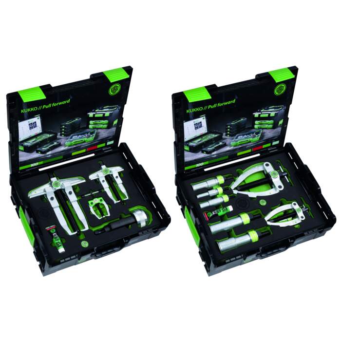 The ball bearing extractor and puller sets of series 24 are used for extracting bearings, gears, washers and for extracting internal bearings, bearing outer rings and bushes during repairs and maintenance. The set includes internal extractors, counter supports, extractor chucks and external extractors.