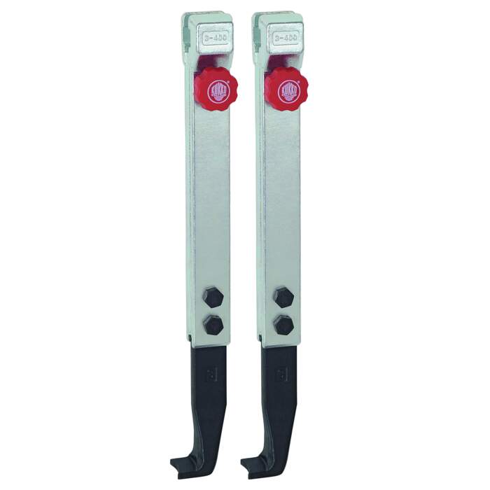 The pair of two narrow, quickly adjustable trigger hooks is suitable for 2-arm universal pullers. The narrow trigger hooks ensure that even narrow and poorly accessible gaps can be reached.