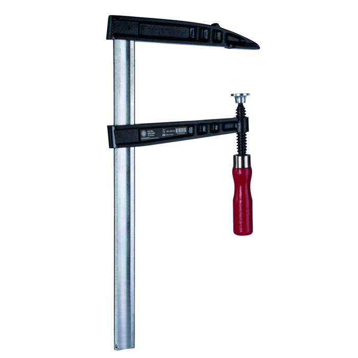 The deep clamping tempered cast iron screw clamps with wooden handle are used for pressing together and holding large workpieces. A high clamping force can be achieved due to the steel slide rail. With their round wooden handle, these series are classics among screw clamps.