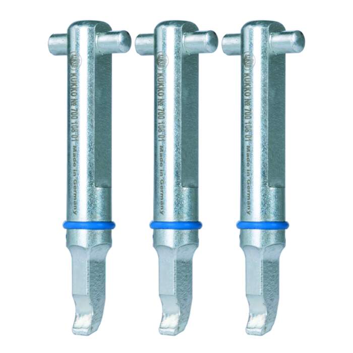 The 70-0-S series puller hook sets are suitable for 70-0 series ball bearing extractors and are used for the non-destructive extraction of deep groove ball bearings without removing the shaft. In addition to the hooks, the sets also include support rings as spare parts.
