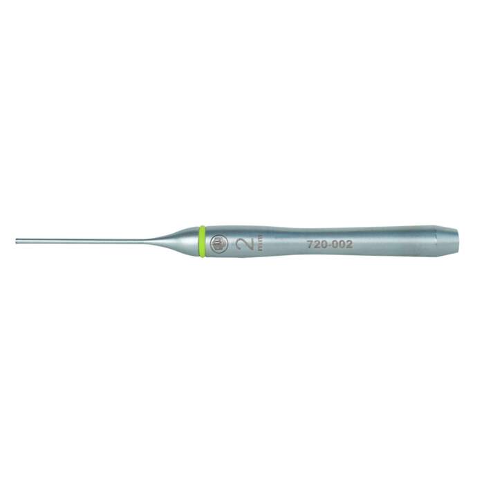 The 720 series pin punch is used to drive out pins and similar parts. The pin punch is available in different tip diameters and shaft lengths and thus allows the selection of the optimum tool depending on the application.