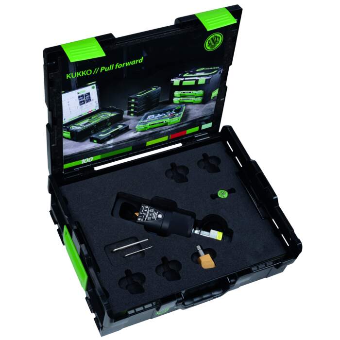 The 4-piece, pump-hydraulic nut blaster set is used for blasting undetachably stuck, rusted or over-tightened nuts of all grades. The TiN coating of the bit has particularly good friction properties, which results in a high cutting performance.