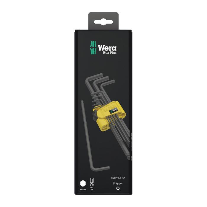 9-piece set in a two-component clip Application: Hexagon socket screws Design: BlackLaser surface Tip: Hex-Plus, ball-end hexagon on long arm