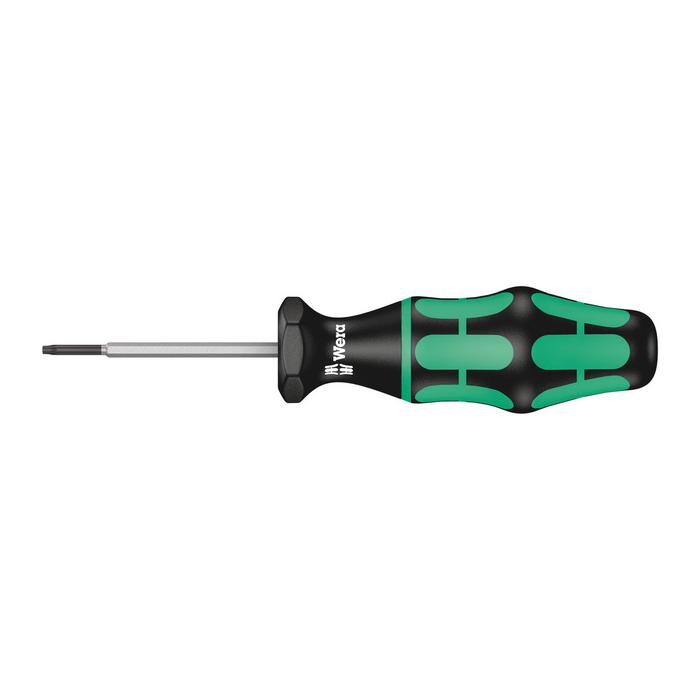 Wera torque screwdriver with fixed torque for recessed TORX PLUS® screws. Tamperproof and with a slim hex blade. Unlimited torque for loosening seized screws. Multi-component Kraftform handle for pleasant, ergonomic working that prevents blisters and calluses. Hard gripping zones for high working speeds whereas soft zones ensure high torque transfer.
