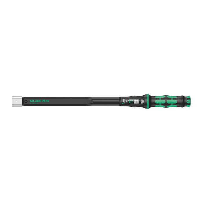 Click-Torque wrench in the unmistakable, robust Wera design with high accuracy as per DIN EN ISO 6789-1: 2017-07. Easy setting and saving of the default value. The audible and tactile clicks on reaching the scale values also facilitate the safe setting of the desired torque value. The robust release mechanism guarantees a clearly audible and tactile release signal when the set torque is reached. For right and left-hand use and with square insert 14x18mm for insert tools.