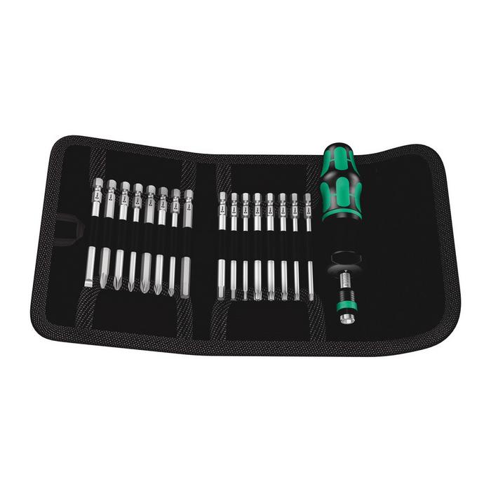 Pouch with 89 mm bits 17-piece set 1 Series 7400 Kraftform adjustable torque screwdriver (1.2-3.0 Nm) with Rapidaptor quick-release chuck